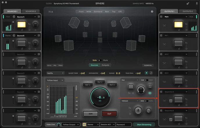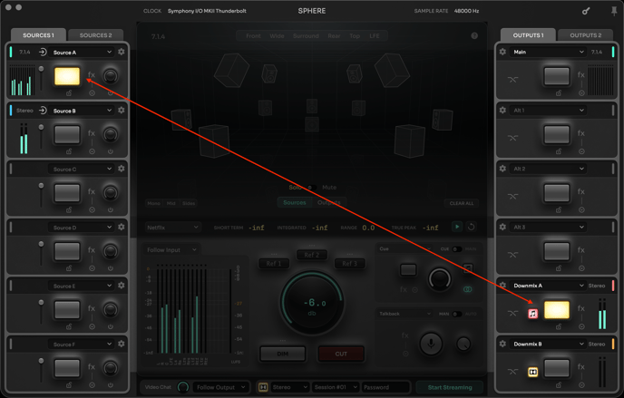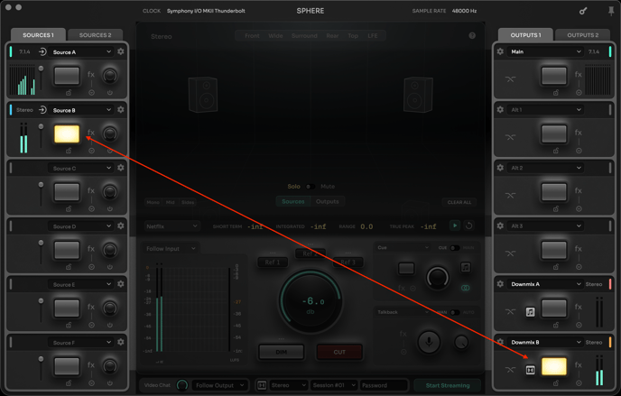 Now, from the Downmix B dropdown, select the same outputs as above, Symphony I/O MkII> Stereo> 13 + 14, and you will finally have this.