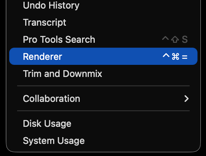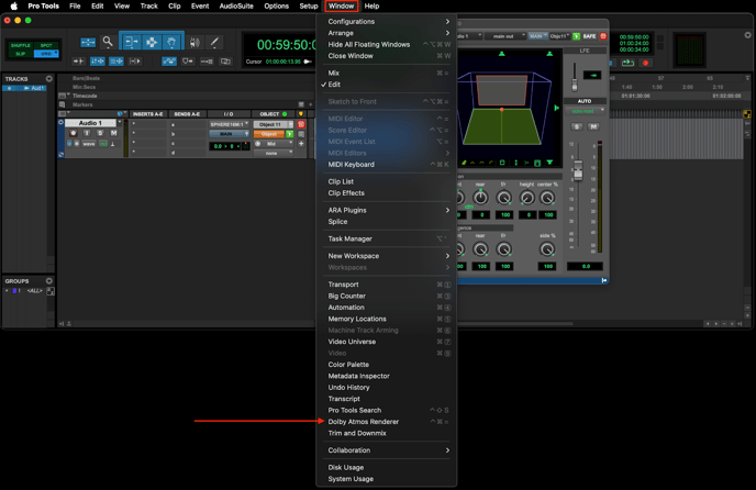 NOTE: As of Pro Tools version 2025.10.0, in the Window menu, the Dolby Atmos Renderer is just referred to as Renderer.