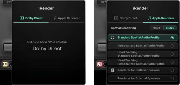 You will now see something like this. In Downmix A a renderer (the little lit up button) is turned on automatically. You may see the Apple one or the Dolby one.