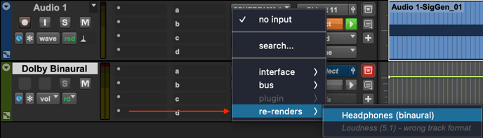 From the Input dropdown menu of the new Aux Track select re-renders> Headphones (binaural)