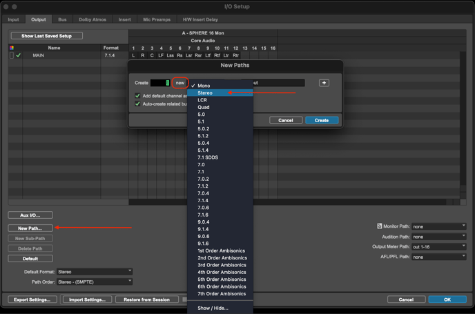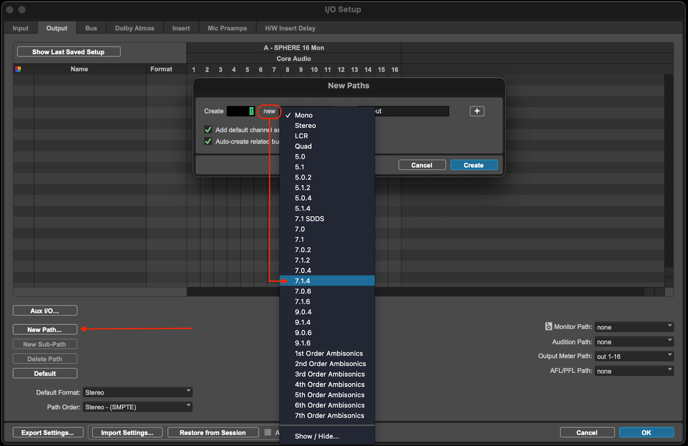 Click on New Path and from the New Paths dropdown, select 7.1.4
