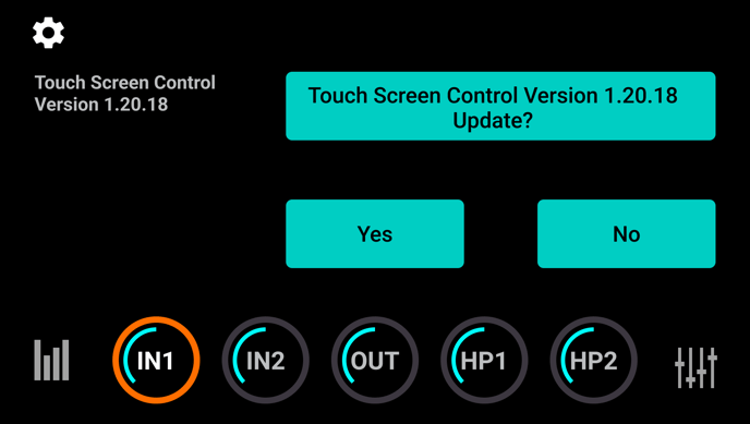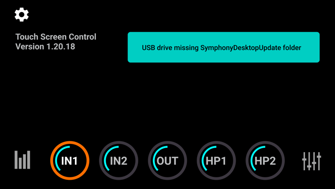 Now insert the USB stick into the USB port on the back of the Symphony Desktop and from the home screen, tap the Gear icon in the upper left corner.